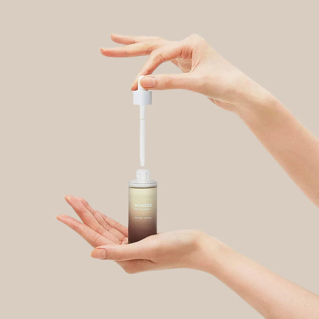 Elevate your skincare routine with our luxurious anti-aging facial oil, designed to revive and rejuvenate your skin. Infused with 45% Fermented Black Rice Extract, this oil is rich in vitamins, minerals, and antioxidants, providing deep moisture and nourishment while shielding your skin from free radical damage. The innovative WONDER technology incorporates 6-year-old Ginseng concentrate-infused sphere liposomes, which help eliminate impurities and combat signs of aging.