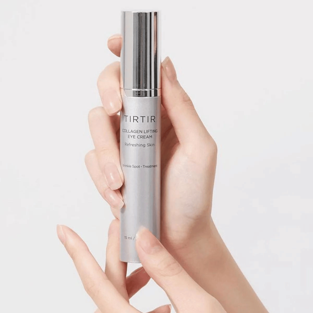 Enhanced with a 1% plant-derived Collagen complex, TIRTIR Collagen Lifting Eye Cream is clinically proven to reduce eye wrinkles, enhance skin density, and firm the delicate eye area within just four weeks. The advanced formula combines five types of Peptides to promote skin elasticity, along with Niacinamide and Adenosine, which brighten and rejuvenate the under-eye area. The eye cream features a refreshing watery texture with a subtle floral scent.