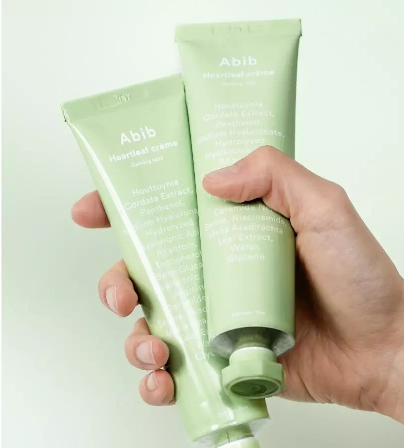 The ABIB Heartleaf Crème Calming Tube offers potent soothing care for damaged, sensitive skin, helping to restore moisture and promote a healthier skin barrier. This nourishing cream contains 1% Heartleaf Extract, which is known for its anti-inflammatory and anti-bacterial properties, to calm irritation and redness while controlling oil levels. The formula also includes Ceramides, Beta-glucan, and eight types of Hyaluronic Acid to boost hydration across multiple skin layers and increase moisture retention, leading to a balanced and healthier complexion. Additionally, Allantoin and Panthenol deeply nourish and repair a weakened skin barrier.